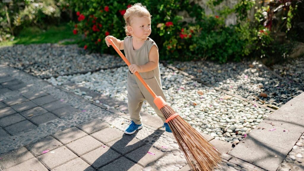 ゴミや落ち葉はほうきで簡単に集めて捨てることができます。
