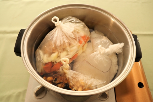 - 低温調理でジップロックは使い方によっては溶けるため耐熱温度などを確認するとよい